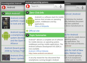 DuckDuckGo is a fast search engine that adds a short blip of information above the normal list of search results, in a way that often answers the question being asked. The informative blip is called “zero-click info.” For example, typing !amazon pillow will immediately route the user to an Amazon search page for pillows. The same trick would work for just about any site. The newly-released Android App has all the functionality of the full site, but it almost seems more fitting as a mobile tool than it ever did on the desktop.